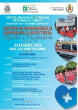 Domani sera alle 20 in Villa Mazzotti si terrà un incontro pubblico dedicato al valore e all'importanza del mondo del volontariato. L'incontro è aperto a tutti coloro che vogliono partecipare. Ad organizzarlo la sezione di Chiari della Croce Bianca.