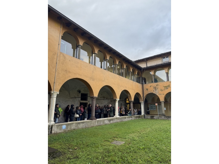 Oltre alla chiesa, trasformata in cappella interna all’ospedale, i partecipanti hanno potuto visitare anche il chiostro originale e l’antico refettorio, ambienti che conservano la struttura del convento francescano e testimoniano la storia e la continuità del luogo all’interno dell’ospedale.