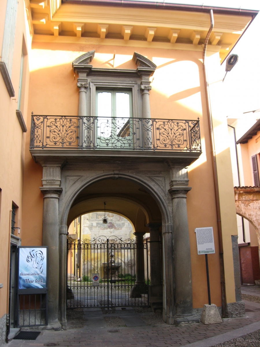 La balaustra ultra barocca in arenaria di Sarnico e gli abbellimenti con presenza di decorazioni ed affreschi, sia nei soffitti interni, che sulla parete del cortile di fronte all'ingresso, richiamano interamente quanto realizzato dall'architetto a palazzo Rotigni di Carobbio.Palazzo Muzio fu poi venduto al Comune che lo utilizzò per le vecchie scuole, per poi venire purtroppo rivenduto a privati nel 1963 per una cifra irrisoria, suscitando enorme disapprovazione, analogamente ad altre operazioni urbanistiche ed architettoniche del tutto discutibili, avvenute in quel periodo, con conseguenze tuttora percettibili.