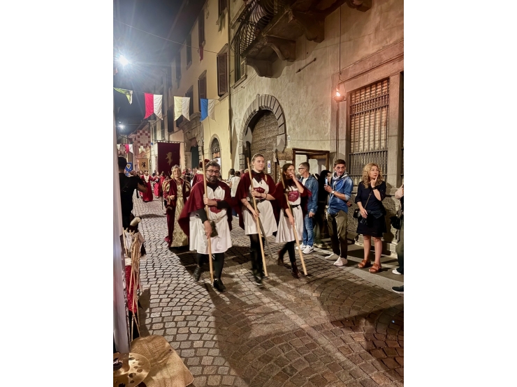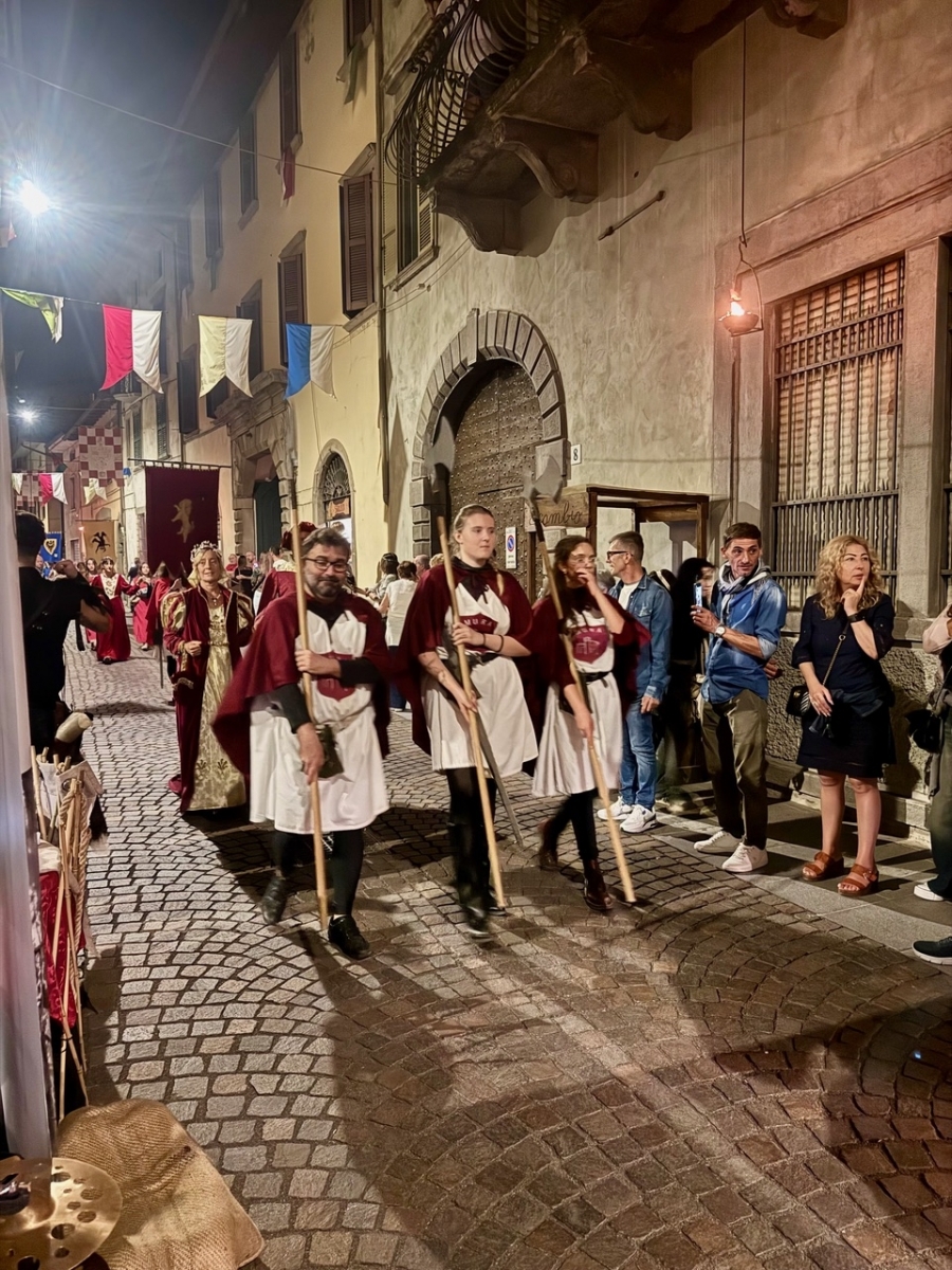 La Festa di Mura, conosciuta anche come Festa di San Girolamo, ha vissuto la sua prima edizione nel 1936 e, dopo essere stata sospesa durante la Seconda Guerra Mondiale, ripartì nel 1952 e continuò fino al 1954. Poi un lungo stop che arriva all’inizio degli anni Novanta quanto un gruppo di volontari riuniti in un Comitato promotore, il Consiglio di San Girolamo, ripropose la festa in una veste diversa: non più la festa patronale, ma Sagra di Quartiere, ricerca e ritrovo delle tradizioni, momento di incontro e socializzazione dei suoi abitanti. E la risposta fu straordinaria tanto che la Festa di Mura oggi è un evento a cui nessuno vuole mancare, lo si è visto anche quest’anno. Per tre giorni nel rione sono ricomparse le mura e le porte che la cingevano nel medioevo, si sono riaperte le locande, tre quelle attive quest’anno, Parisì, Giovani, Terzo Millennio, dove è stato possibile mangiare e brindare pagando con la “palanca”, la moneta medievale coniata per l’occasione acquistabile nei punti di cambio. E sono tornati anche musiche, danze e costumi medioevali, mentre nei vicoli o nei portoni delle vecchie abitazioni hanno trovato posto i vecchi mestieri.