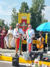 Un gran bel movimento tra Rudiano e Pumenengo domenica scorsa: sul Ponte Gandini si è giocata una battaglia epocale, giocata tutta sul filo del divertimento e della storia, all’insegna di Bergamo e Brescia Capitale della Cultura 2023. Le terre di confine hanno una caratteristica ben precisa in quest’annata speciale, ovvero rappresentare il collegamento reale tra i due capoluoghi, per tramite delle loro popolazioni, delle loro storie, delle loro culture. Un mondo troppo spesso parallelo e che poche volte si è incrociato, sempre sospeso tra veti e luoghi comuni e che invece, durante gli eventi organizzati per questa giornata, ha svelato una comunanza di amore per la propria terra mai percepito prima, almeno con tale forza e impatto.