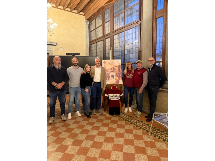 E’ stata presentata ufficialmente nella sala del pianoforte del Municipio di Rovato la locandina 2026 della Vignastorica, l’attesissima manifestazione promossa dall’associazione Pedale Franciacorta che, giunta alla quinta edizione, unisce il ritorno intenzionale al passato al gusto di godersi i paesaggi attraversati, legandoli alle tipicità enogastronomiche del territorio. A fare gli onori di casa il primo cittadino Tiziano Alessandro Belotti, che ha espresso l’orgoglio della città nell’ospitare un evento così importante:“Rovato ha la piazza più bella della provincia di Brescia, nata per soddisfare le esigenze del fiorente mercato. Nella prossima edizione sarò ancora sindaco, ma sono certo che la collaborazione con il Comune continuerà anche con l’Amministrazione che verrà”. E’ stato lui a svelare la locandina 2026, che riproduce in forma stilizzata tre luoghi simbolici della città: piazza Cavour, la torre del campanile e il Convento della Santissima Annunciata. E’ toccato invece a Giovanni Belloni, presidente di Pedale Franciacorta, annunciare il programma e presentare i percorsi della prossima edizione, in calendario per l’11 e 12 aprile. Sostanzialmente confermati i due percorsi (uno più corto da 38 km, con +450 metri di dislivello e il giro completo da 58 km, con +700 metri di dislivello). Quattro i ristori: la colazione nel cuore della Franciacorta alla Cantina Barisei, la tappa sul lungolago di Clusane grazie alla collaborazione con la cooperativa dei Pescatori; il passaggio tra i vigneti consentito dalla Cantina Barboglio De Gaioncelli e infine l’ospitalità della famiglia Carrara a Vill’Arquata. Immutato anche il programma, con lo spiedo e l’intrattenimento musicale il sabato e la partenza della Vignastorica la domenica mattina da piazza Cavour, arricchita dalla presenza della fanfara dei Bersaglieri. All’arrivo, il pranzo a base di manzo all’olio, piatto tipico di Rovato. “Ringraziamo tutti gli sponsor, il gruppo di lavoro in cucina coadiuvato da Andrea Guarneri, le cantine che offrono i loro vini e l’amico Cristoforo Piantoni per il supporto con il suo prodotto Lucio”, ha commentato. Novità dell’edizione 2026 la collaborazione con l’associazione La Giostra a colori che, attiva dal 2020, ospita un centro ludico ricreativo per ragazzi e ragazze con disabilità. Saranno proprio i ragazzi della Giostra a realizzare, a mano, i pettorali della Vignastorica. Entusiasmo da parte della presidente Antonia Zanotti, felice di fare rete con altre realtà del territorio. Il vicepresidente di Pedale Franciacorta Kristian Salvoni ha precisato che l’attenzione all’aspetto benefico rispecchia una sensibilità che viene da lontano, aggiungendo che la Vignastorica punta ad andare oltre i confini nazionali, con una nuova versione del sito in inglese e la preparazione di un nuovo video.